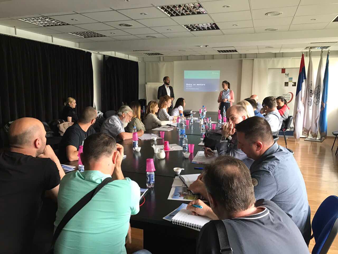 Obuku za mentore realizovali smo uz pomoć trenera iz Atria Group, Stanke Vučetić i Mirka Samardžića koji su učesnicima objasnili kako da izaberu kandidata za program mentorstva, koje su to karakteristike i kompetencije koje treba da ima kvalitetan mentor, kako se realizuje mentorski proces, koji mentorski stilovi postoje, kako biti mentor osobama različitih komunikacionih stilova ali i kako izgraditi poverenje u mentorskom procesu.