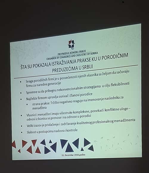 Unija poslodavaca Srbije je danas održala predavanje na temu RAZVOJ MSP – SPECIFIČNOSTI I IZAZOVI UPRAVLjANjA PORODIČNIM PREDUZEĆIMA. Cilj je da se osnivači i vlasnici porodičnih preduzeća motivišu da rade na usvajanju i primeni principa i dobre prakse korporativnog upravljanja koji su primereni fazi razvoja preduzeća.